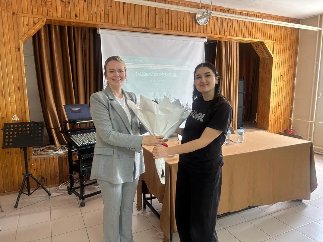 Bornova Hatice Güzelcan Anadolu Lisesi Konferans Salonu’nda düzenlenen etkinliğe, İzmir Demokrasi Üniversitesi Öğretim Görevlisi Esra Güneri, okul yöneticileri, öğretmenler ve 11. sınıf öğrencileri katıldı.