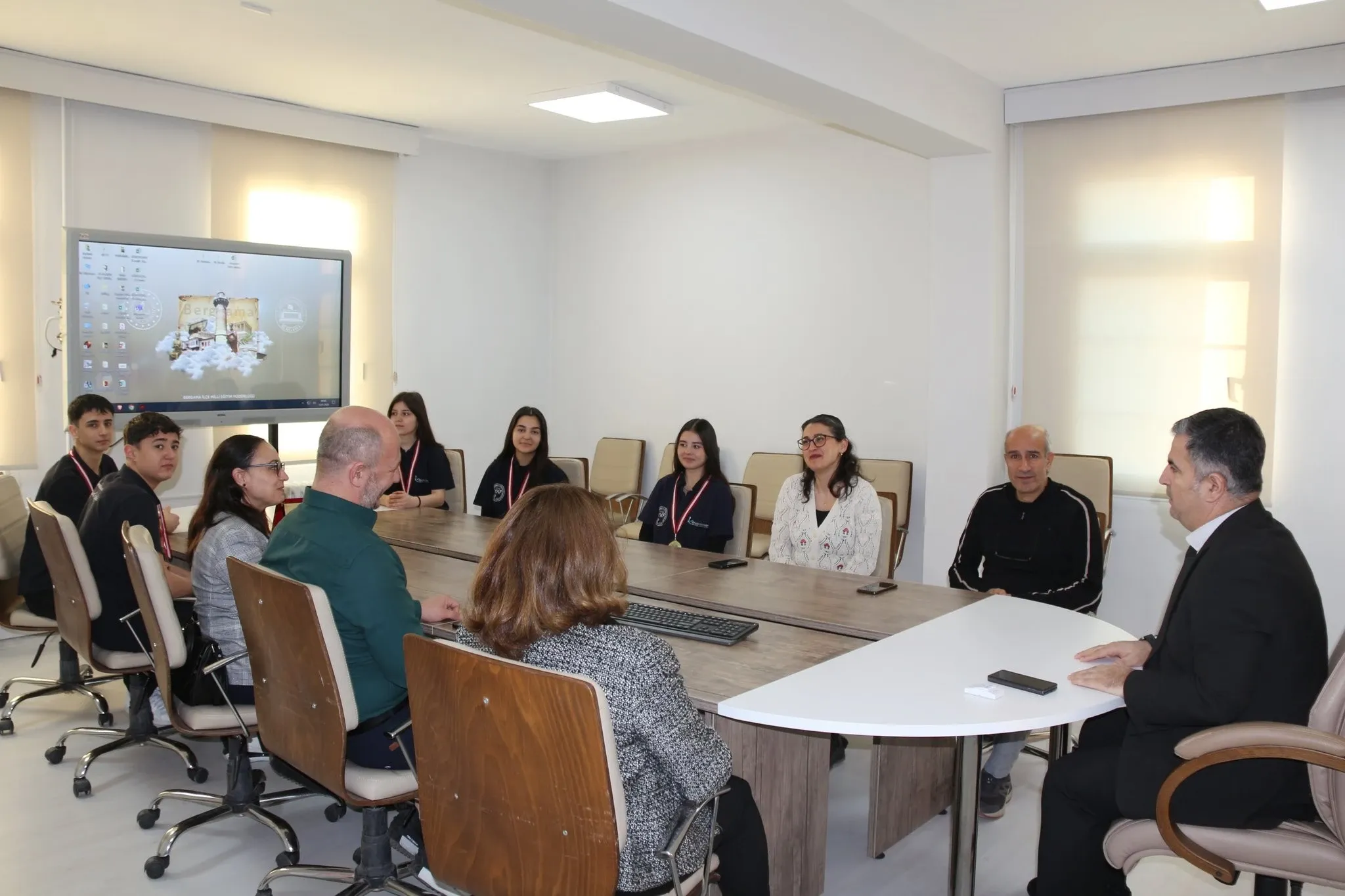 Antalya’da düzenlenen 11. Uluslararası Housekeeping Olimpiyatları’nda birincilik elde eden Bergama Yusuf Kemalettin Perin MTAL öğrencileri, öğretmenleri ve okul yöneticileri, Bergama İlçe Milli Eğitim Müdürü Ekrem Ulus tarafından makamında kabul edildi.
