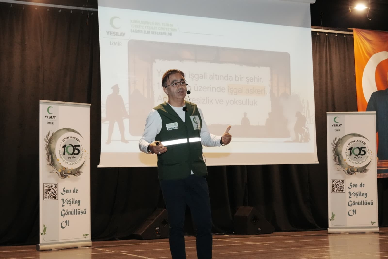 Konferans, Yeşilay İzmir Şubesi tanıtım videosunun izlenmesiyle devam etti. Yeşilay İzmir Şube Başkanı Dr. Ömer Yahşi, Millî Mücadele döneminde kurulan Yeşilay'ın geçmişten bugüne önemine değinerek şunları kaydetti: "Geleceğimiz olan gençlerimiz için buradayız. Bize altın tepside sunulmayan bilakis canla ve kanla vatan kılınan bu topraklarda; Fuzuli'nin 'bir gül hatırına bin dikene katlanmayı' göze aldığı gibi, bizler de tek bir gencimizin dahi yitip gitmemesi, bağımsız ve müreffeh bir geleceğe ulaşması adına bu kutsal mücadeleyi sürdürme kararlılığındayız. Bağımlılık, işgallerin en kötüsüdür ve bir insanın düşebileceği en büyük hastalıktır."