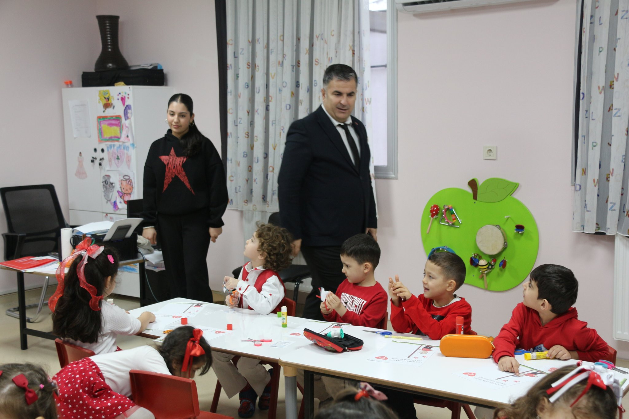 “Bayrağımız ve Birliğimiz” etkinliği kapsamında Bergama İlçe Milli Eğitim Müdürü Ekrem Ulus ile Şube Müdürü Bilal Kürüm, Bergama Bağımsız Anaokulunu ziyaret ederek öğrencilerle buluştu. Ziyarette öğrencilerle sohbet eden Ulus, eğitim sürecine ilişkin değerlendirmelerde bulundu.