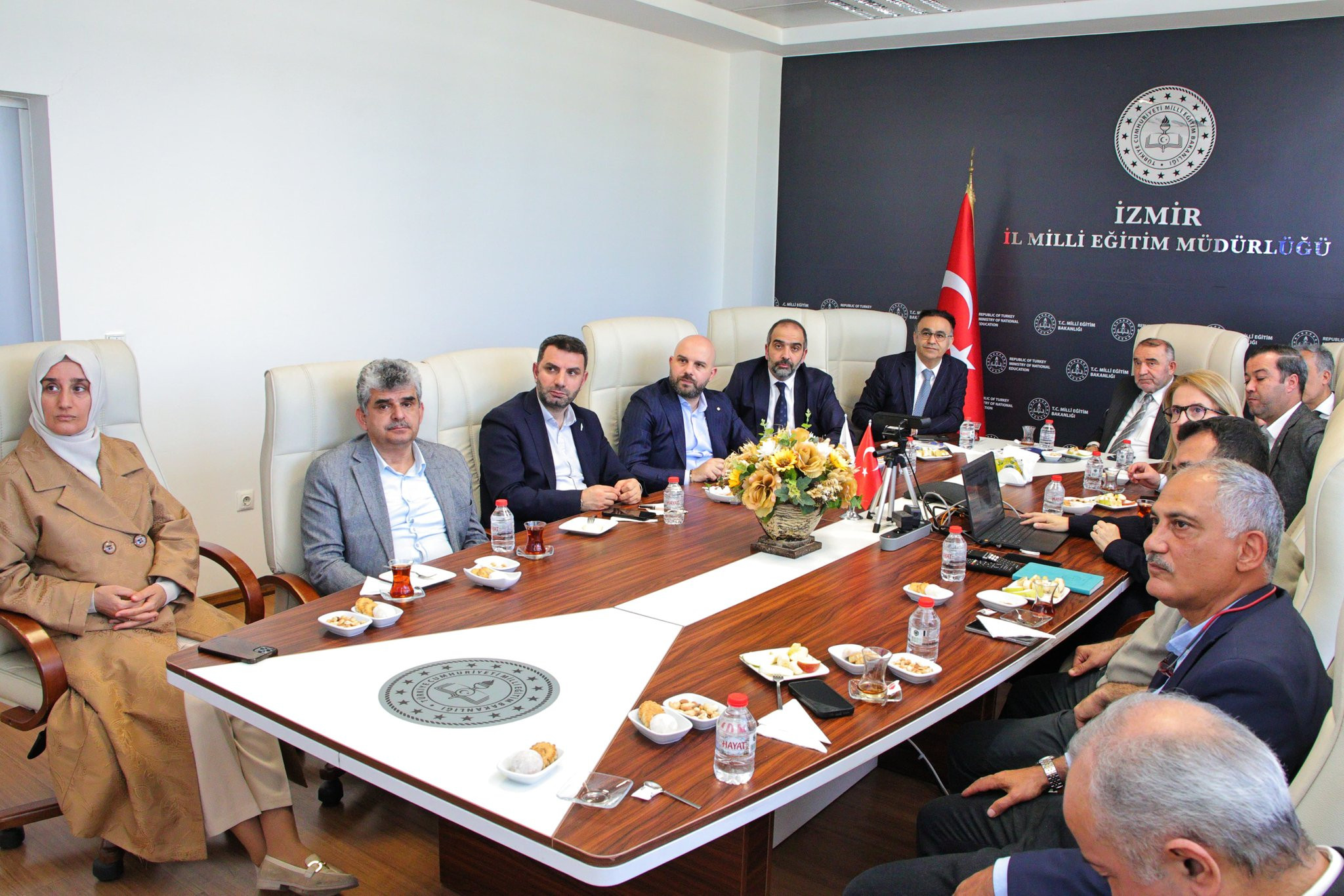 umhurbaşkanı Başdanışmanı İsrafil Kışla, beraberindeki heyet ve Ege Üniversitesi Rektörü Prof. Dr. Musa Alcı ile birlikte İzmir İl Millî Eğitim Müdürü Dr. Ömer Yahşi’yi makamında ziyaret etti.