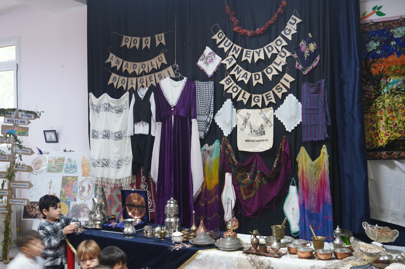 Etkinlikte veliler ve öğrenciler, Türkiye’nin 7 coğrafi bölgesini tanıtan istasyonlarda bir araya geldi. Geleneksel kıyafetlerin, yöresel yemek örneklerinin, el sanatlarının ve bölgelere özgü kültürel değerlerin sergilendiği stantlar, renkli görüntelere sahne oldu.