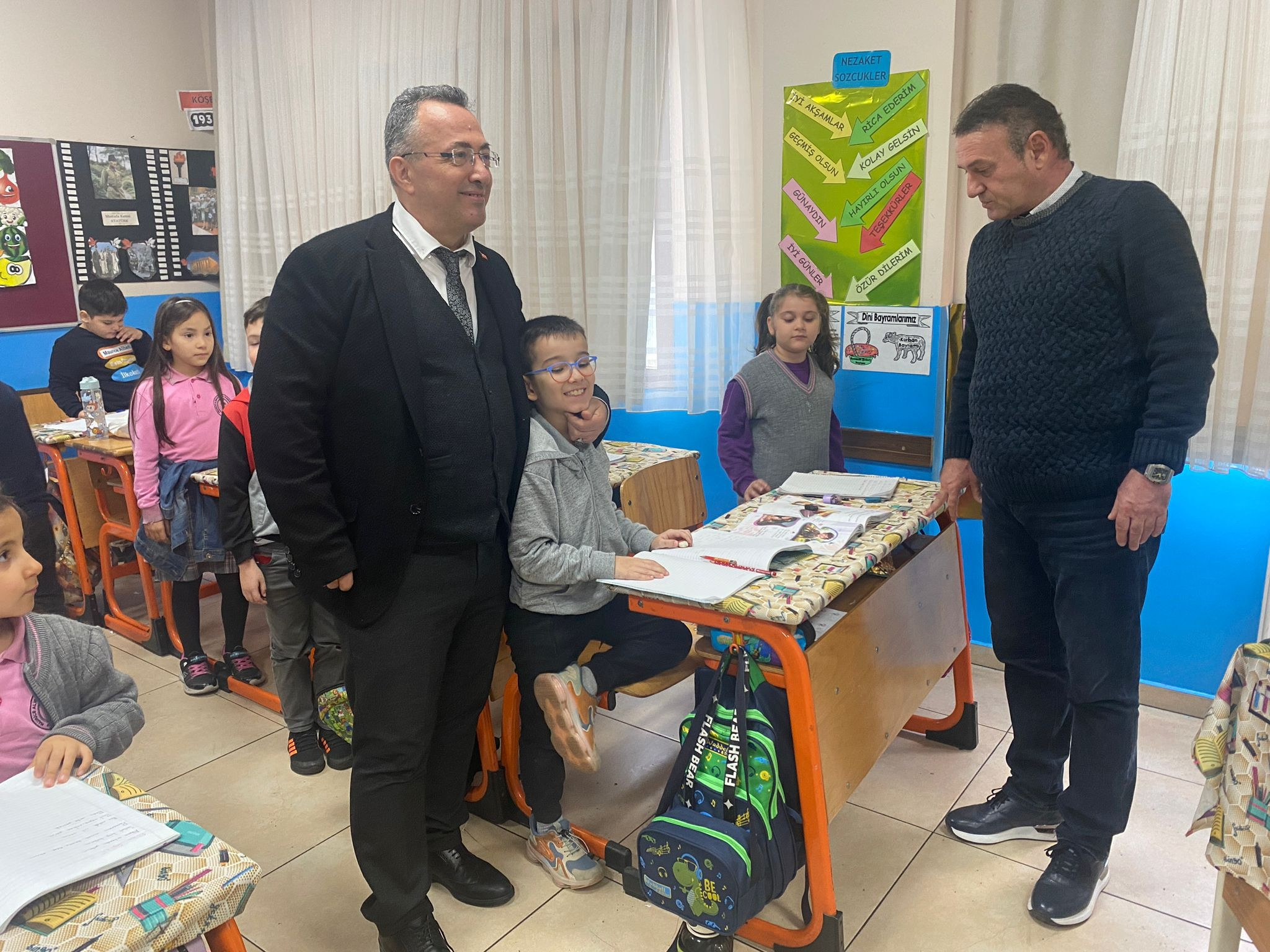 Menderes İlçe Millî Eğitim Müdürü Yusuf Yılmaz ve Şube Müdürü İrfan Kahraman, Maurice Aliberti – Esin Özgener İlkokulunu ziyaret ederek...