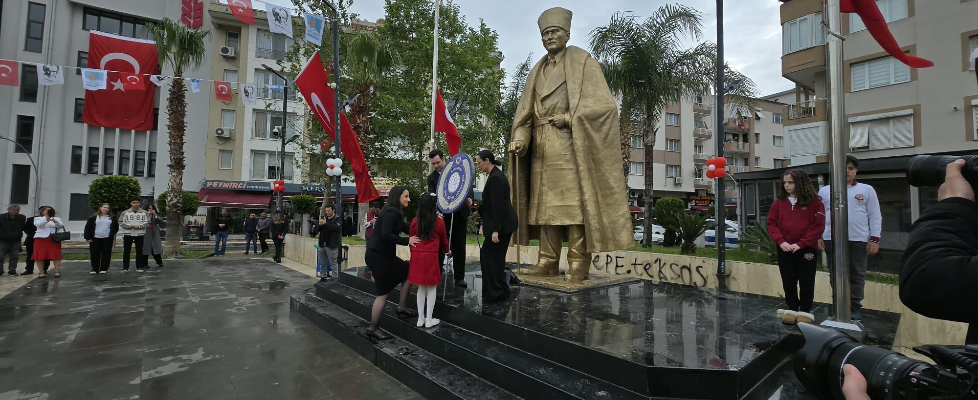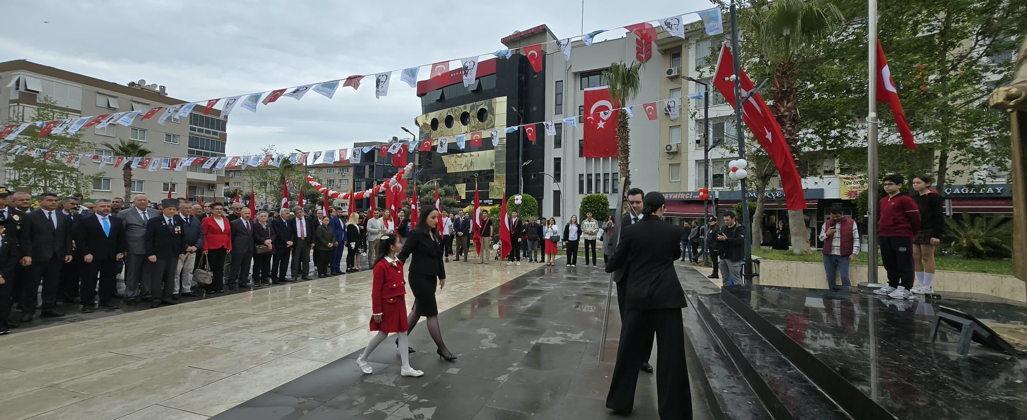 Narlıdere’de 23 Nisan Ulusal Egemenlik ve Çocuk Bayramı’nın 106. yıl dönümü kapsamında Demokrasi Meydanı’nda çelenk sunma töreni düzenlendi. Törene Narlıdere Kaymakamı Kadir Taner Eser, Narlıdere İlçe Millî Eğitim Müdürü Zeynep Başdaş ve ilçe protokolü katıldı.