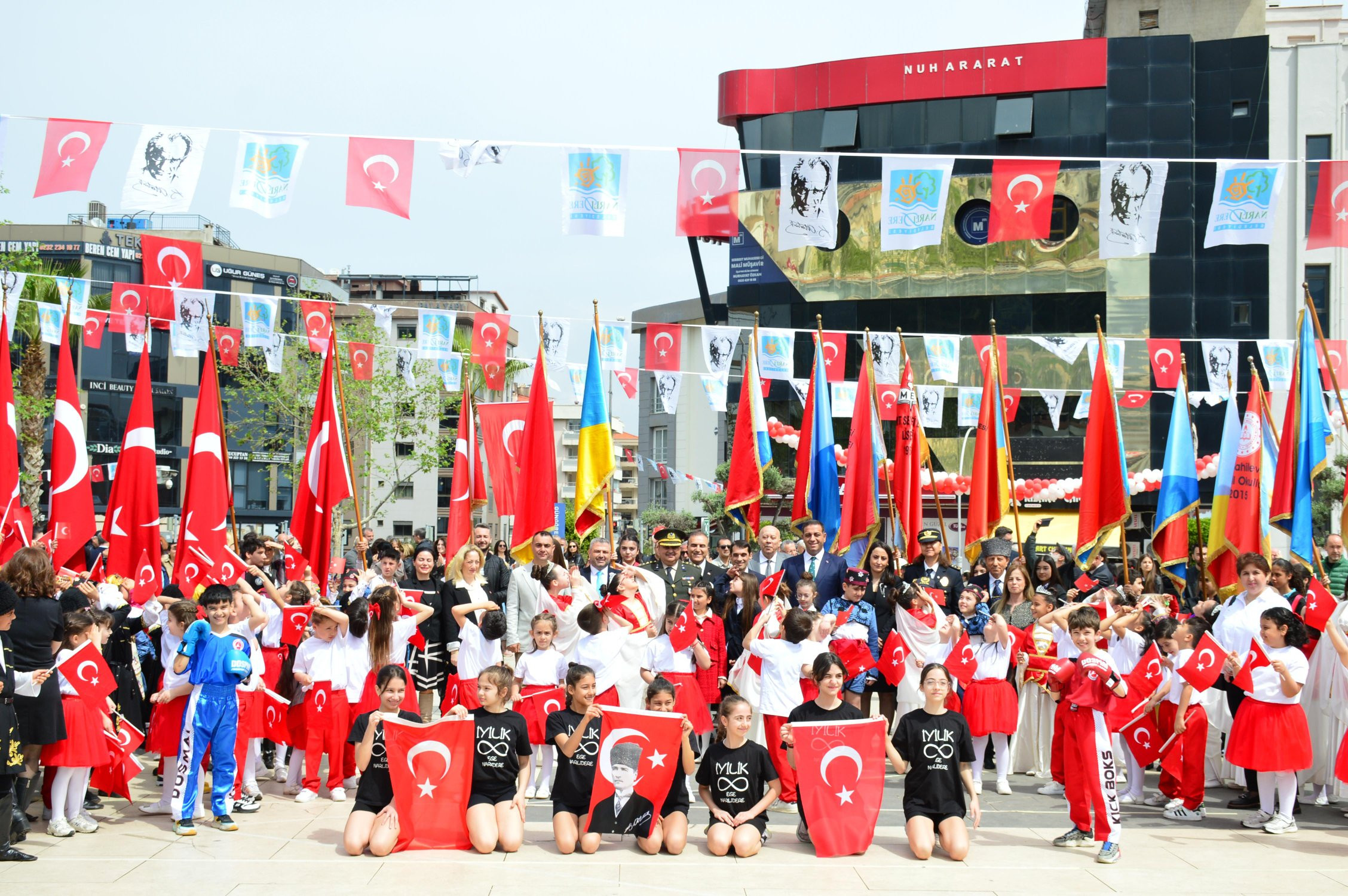 Tören, öğrencilerin hazırladığı çeşitli etkinlikler ve gösterilerle devam etti. Narlıdere’de gün boyu süren programlarda çocuklar bayram coşkusunu yaşadı.